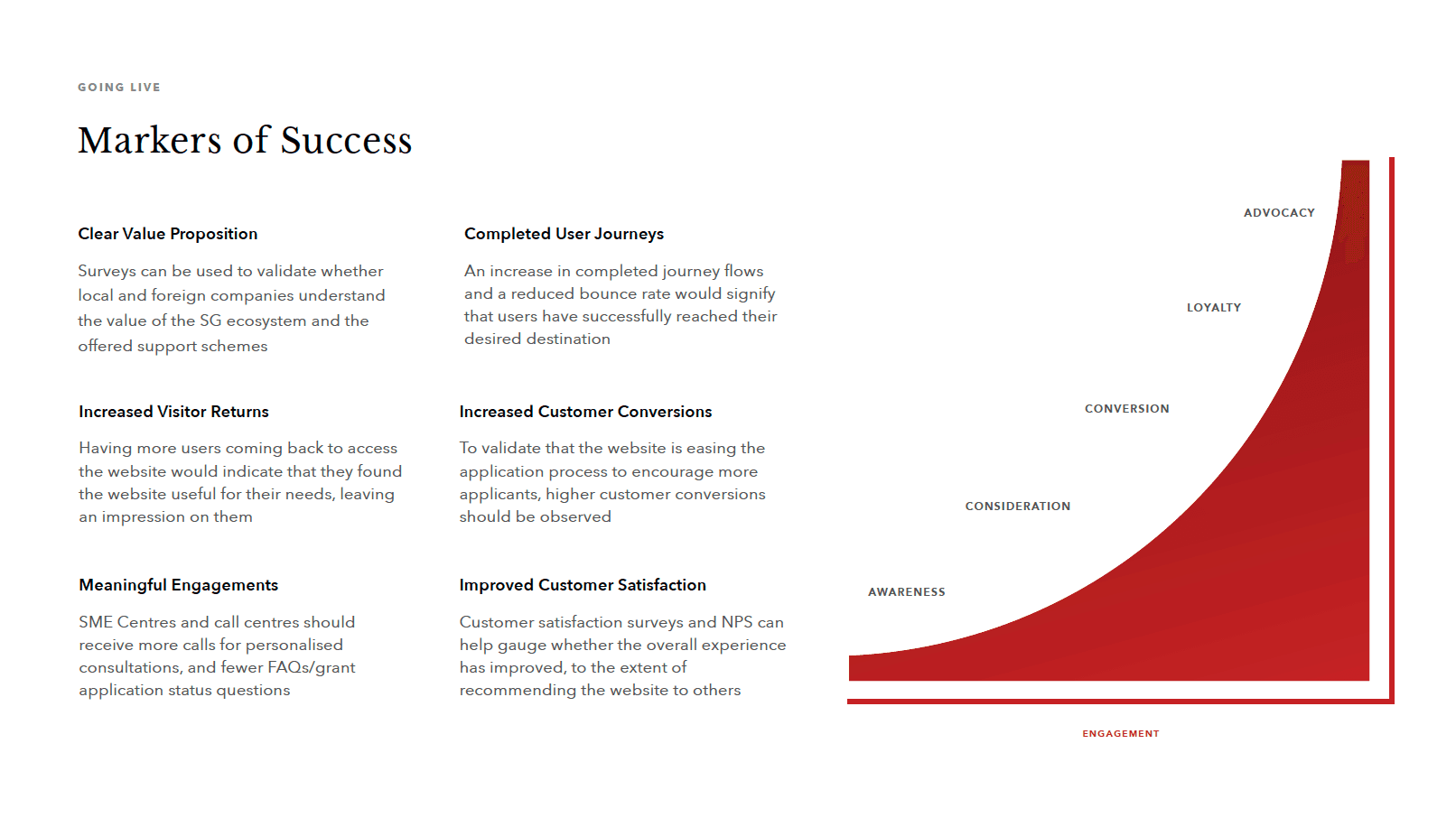 Enterprise Singapore needed to translate its core mission—supporting the growth of local and foreign businesses—into a more intuitive, outcomes-driven website experience. Despite offering a wide range of products and services to provide support to businesses during COVID-19, they saw low engagement and high drop-off rates.