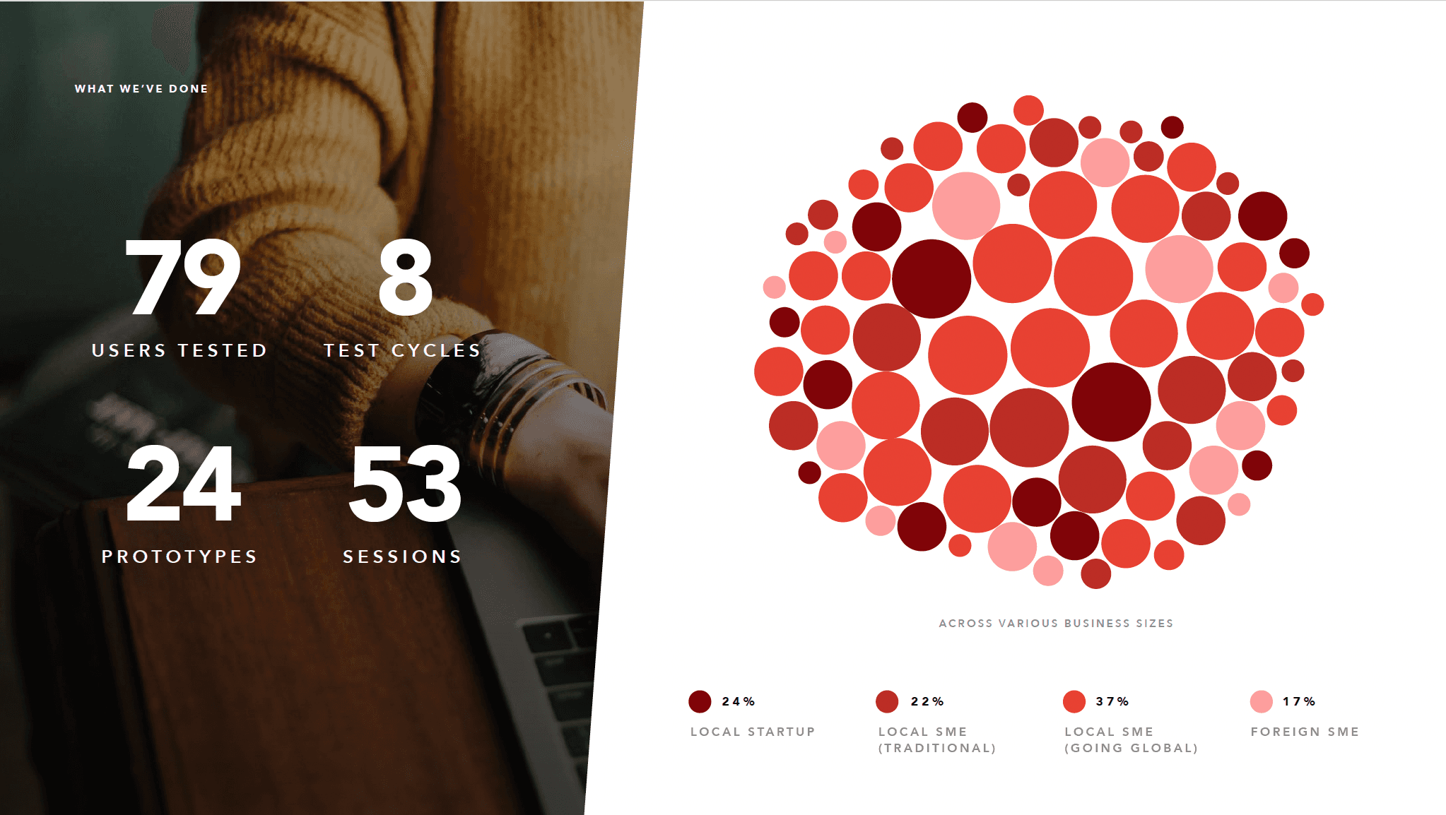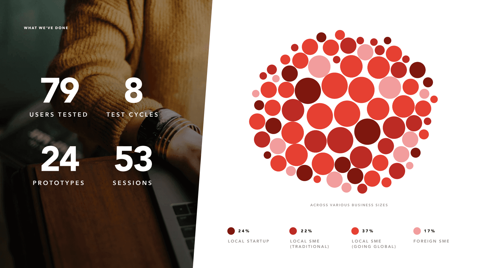 Balanced research scope, sampling businesses by size, stage, and industry to reflect real user diversity.
